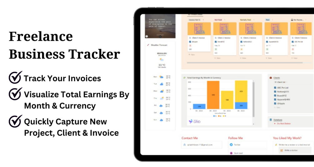 Whether you're a seasoned freelancer or just starting out, this template is designed to manage and track your projects, clients, and finances.